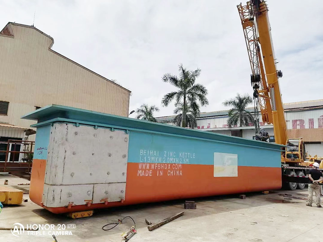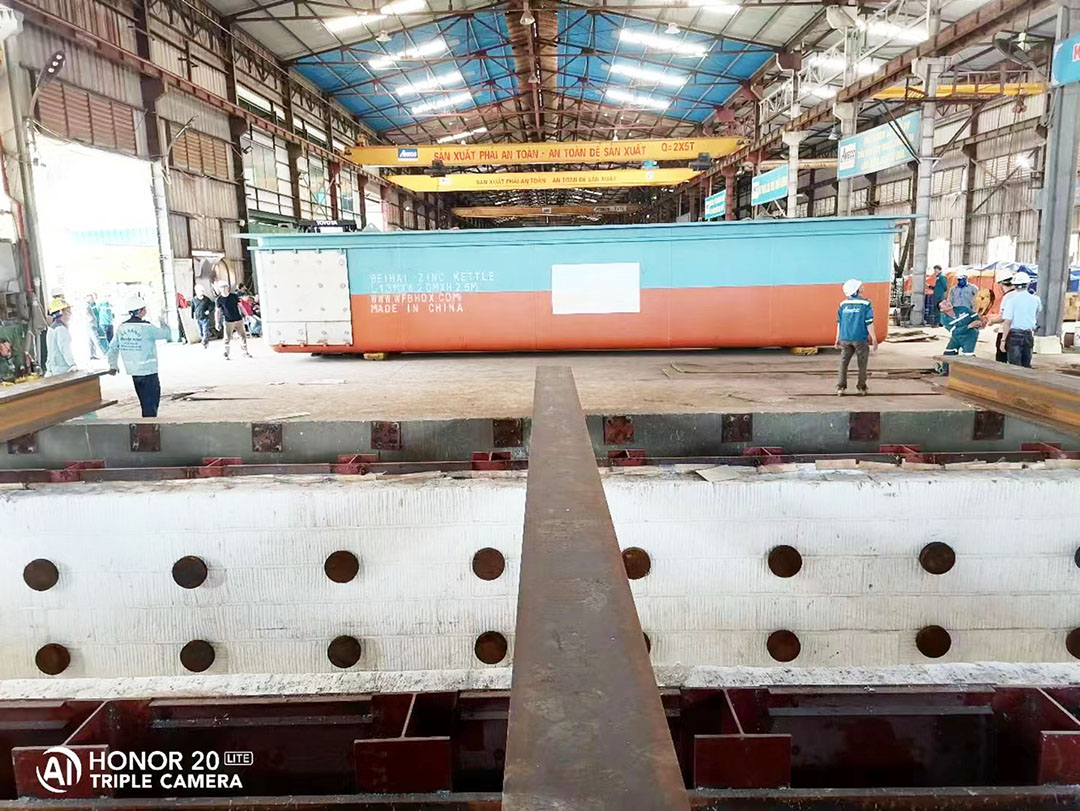 北海镀锌出口大型锌锅顺利安装完成