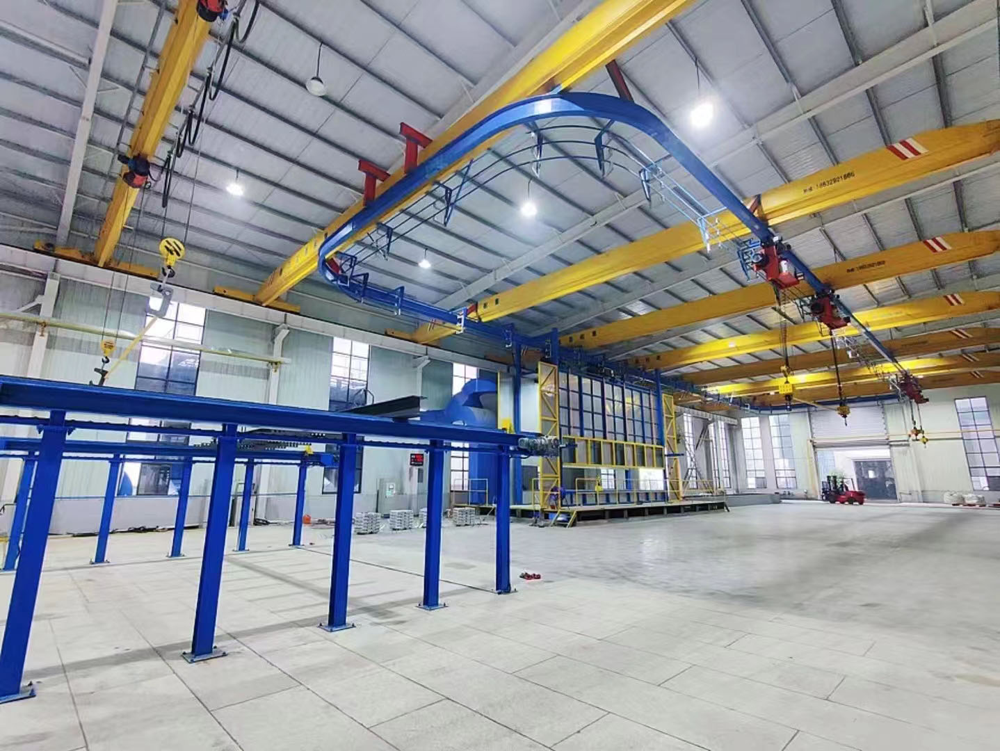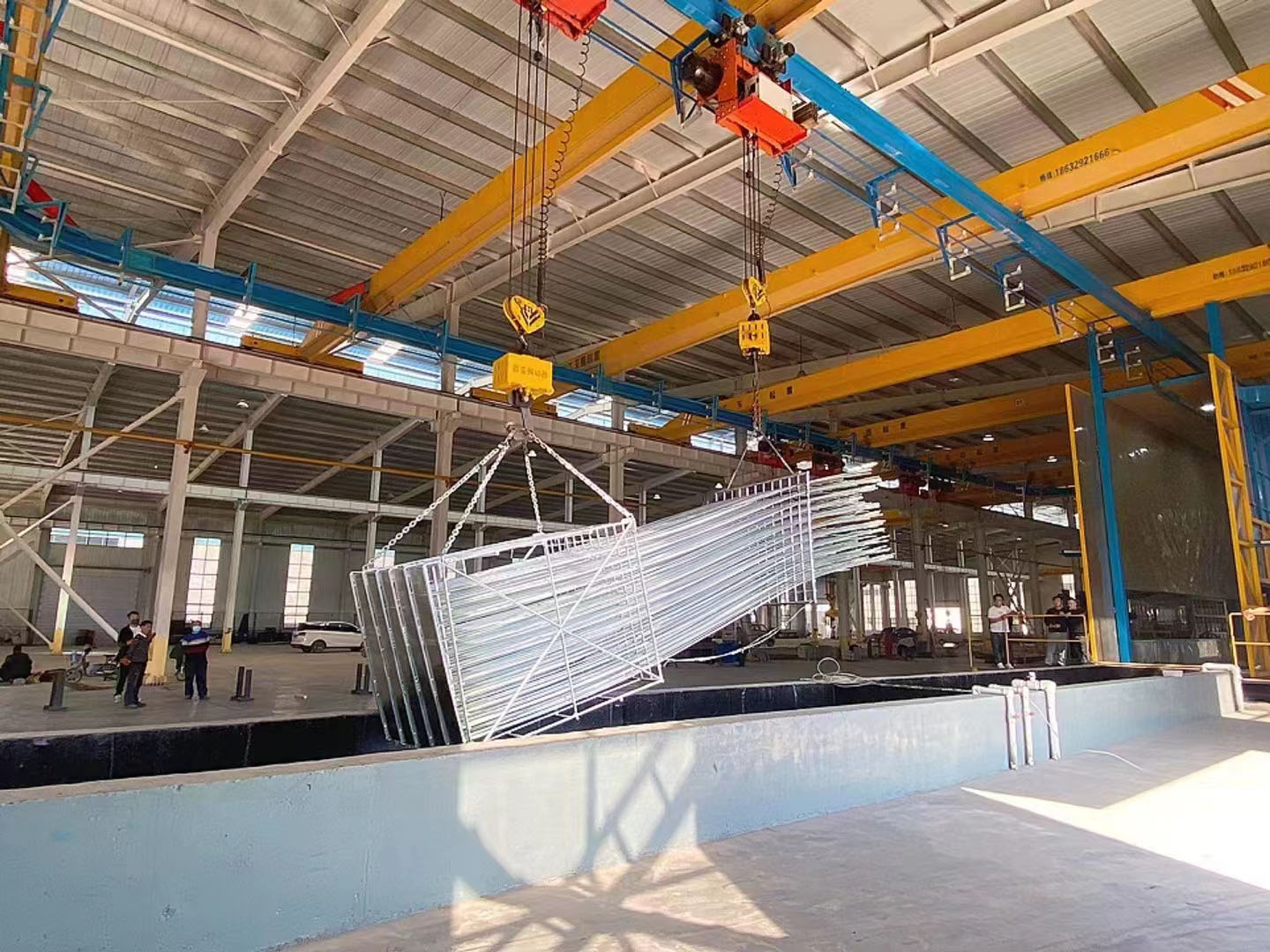 近日,由潍坊市北海镀锌设备有限公司为邯郸宜邦制造有限公司设计、建造的大型热镀锌环形生产线已完成全部安装调试,正式投入生产运行。该生产线采用环形轨道布局,具备工件流转连续、生产效率高、能源利用率优等特点,可广泛应用于电力金具、光伏支架、建筑构件等产品的批量热镀锌加工。